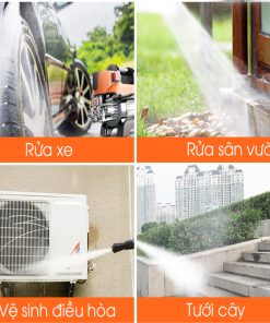 – Xịt rửa khoẻ, áp lực cao, máy chạy mô tơ từ không chổi than, tự ngắt khi nhả cò súng.