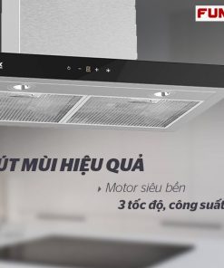 Máy hút mùi kính cong FUMAK 7013 có công suất lớn tới 1100m³ /h, 3 tốc độ hút cho hiệu quả hút mùi tốt ưu lại tiết kiệm điện năng. Mùi dầu mỡ hay các mùi khó chịu khác trong quá trình nấu nướng sẽ nhanh chóng bị hút sạch, không gây ám mùi lên quần áo, các vật dụng nhà bếp hay các không gian liền kề khác (điển hình như thiết kế căn hộ chung cư).
